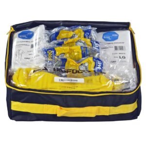 - PPE Kit: 4 Tyvek Suits, 4 Safety Goggles, 4 Chemical Gloves, 4 Boot Covers, Emergency Response Guidebook, 10 Disposal Bags, Wall Sign, Nylon Bag
