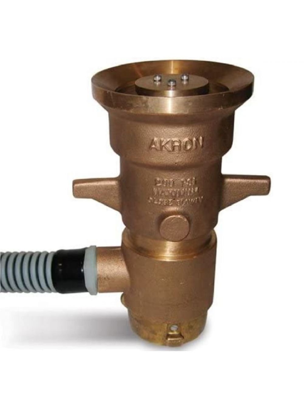 A fixed gallonage master stream nozzle with built-in stream shaper designed for flows up to 1250 gpm. Ideal for heavy-duty use on fixed monitors. Style 4460 has a twist shutoff.