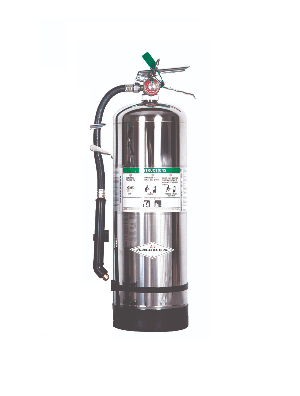 WET CHEMICAL extinguishers are the best restaurant kitchen appliance hand portable fire extinguishers you can purchase. Each model has been tested and approved for the Class K listing by UL specifically for restaurant kitchen hazards. They contain a special potassium acetate based agent. The recent trend to more efficient cooking appliances and use of vegetable based cooking oils dictates the use of a hand portable fire extinguisher with greater fire fighting capacity and cooling effect to combat these very hot and difficult fires. Available in two sizes – 6 liter or 2? gal. – with attractive stainless steel cylinders and easy to use hose and spray application nozzle. The superior fire fighting capability of the Wet Chemical agent is placed exactly where you aim it with no chemical residue to clean up. The Models B260 and B262 are the ideal ?KITCHEN USE? fire extinguishers. They supplement existing cooking equipment automatic system protection for an extra margin of safety.