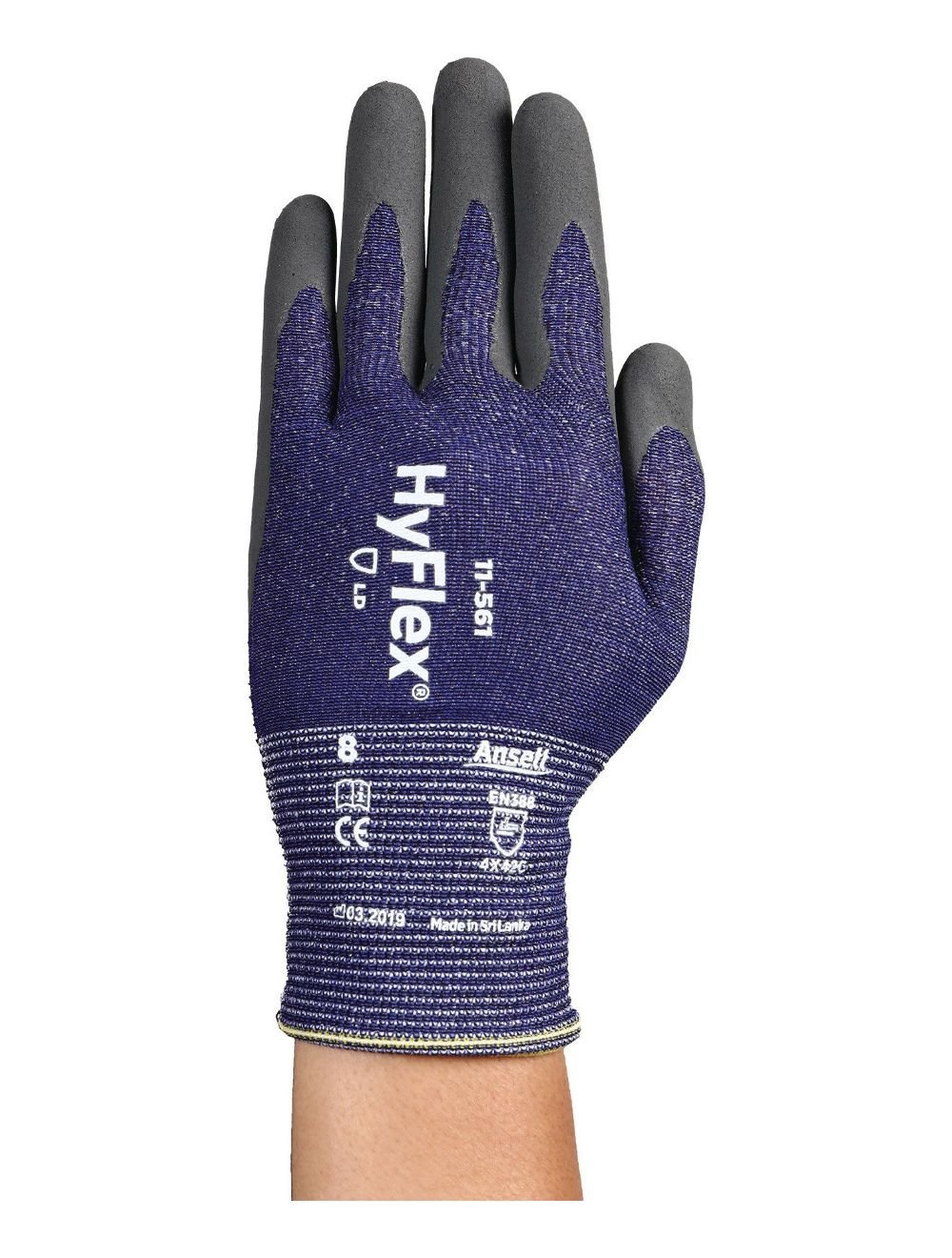 HyFlex? 11-561 is the best choice when high cut and dexterity in dry to light oil conditions are needed. The thin coating uses FORTIX technology which provides not only extra durability but also a fit that is more comfortable and breathable. The reinforced thumb crotch increases protection for a key area of hand contact and extends the lifetime of the glove. High cut protection (ISO C/ANSI A3) and tear resistance