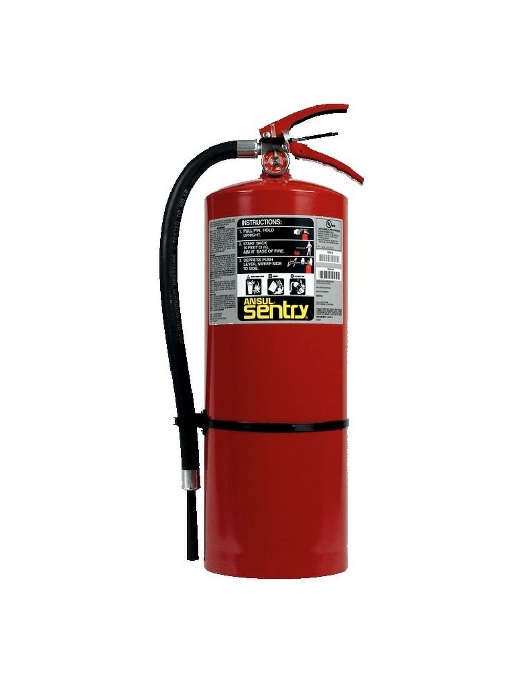 ANSUL? AA20-1 20 Pound SENTRY? 20 FORAY? Dry Chemical Hand Portable Extinguisher operates effectively at the temperature range of -40 to 120 deg F. Extinguisher has valve that is made from a durable extruded aluminum alloy. Extinguisher measuring 22 1/2″ X 9 1/2″ X 7 7/32″ is simple to operate and maintain. It is ideal for protection of light and ordinary hazards. Compact as well as portable extinguisher can be used for both industrial and commercial fire protection requirements. It fits most wall mounted storage cabinets. It can be used in applications like light manufacturing, restaurants, shop areas, apartment buildings and more. It has maximum effective range of 22′ and discharge time of 28 sec. Extinguisher comes with large pressure gauge that is easy-to-read and has 1-piece mylar nameplates that are glare-resistant. Rechargeable extinguisher is made of long lasting high quality materials. Shell is produced with a cold deep draw process that gives a seamless steel cylinder with a high tensile strength. It produces a smooth, high integrity weld with MIG welded collar and specially pre-formed bottom enclosure. Extinguisher has easy grip handles that offer maximum portability and lets operators to fight the fire without removing work gloves. Extinguisher features rugged all-steel pick-up tubes that ensure proper as well as dependable agent flow through the valve body. It comes with large, color-coded pressure gauges to give visual indication of unit readiness. Coated steel ring pins with large 1 1/4″ Dia are used and held in place by a visual inspection seal to avoid accidental discharges. It helps in easy inspection and maintenance record keeping with easy-to-scan bar coded model and UL/ULC serial numbers. Label featuring easy-to-read pictograms provides step-by-step operating instructions. Label also features useful recharge, operating temperature, maintenance, inspection, HMIS and model information. FORAY? is mono ammonium phosphate-based agent that is designed for use on class A and class B fires, class C conductivity.