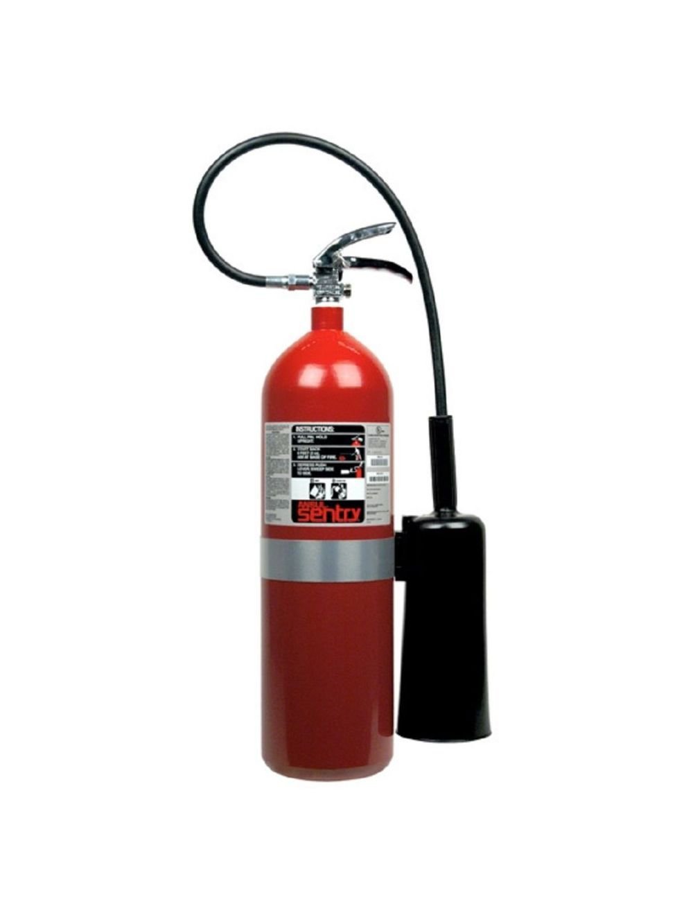 Ansul Sentry carbon dioxide extinguisher protects areas where class B (flammable liquids and gases) or Class C (energized electrical equipment) fires could occur. They may be used indoors where winds and drafts do not affect discharge or where a clean extinguishing agent is required. Typical applications include laboratories and electronic equipment.