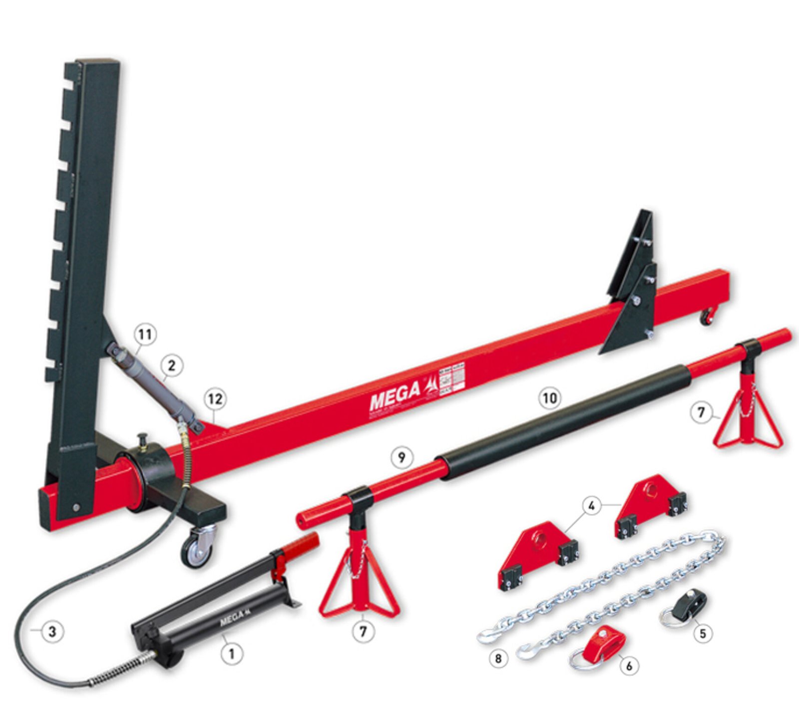 MEGA CAR BODY ALIGNING SET EHA-10 | THE MAXIMUM WORKING LOAD OF THE CHAIN IS 1.4T | CAN PULL FROM DIFFERENT ANGLES | CARRY OUT REPAIRS ON BADLY-DAMAGED CARS | MAD IN SPAIN