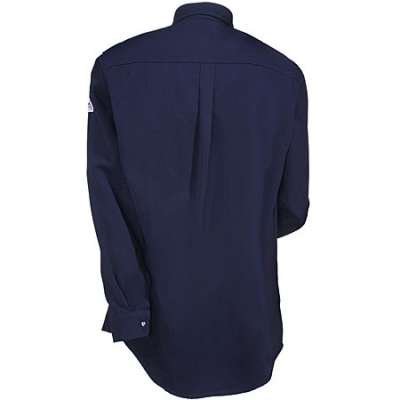 This fire-resistant work shirt is constructed from a blend of lightweight Cool Touch materials that are soft, flexible, and comfortable to wear as well. The best part about this Bulwark flame-resistant shirt for men is that it requires low maintenance, so you can wash it at home! (Just what you wanted to hear, right?) In addition, this navy blue uniform shirt has an Arc rating of ATPV 9.0 calories/cm^2 (HRC 2). It also meets NFPA 2112 standards for flame-resistant clothing.