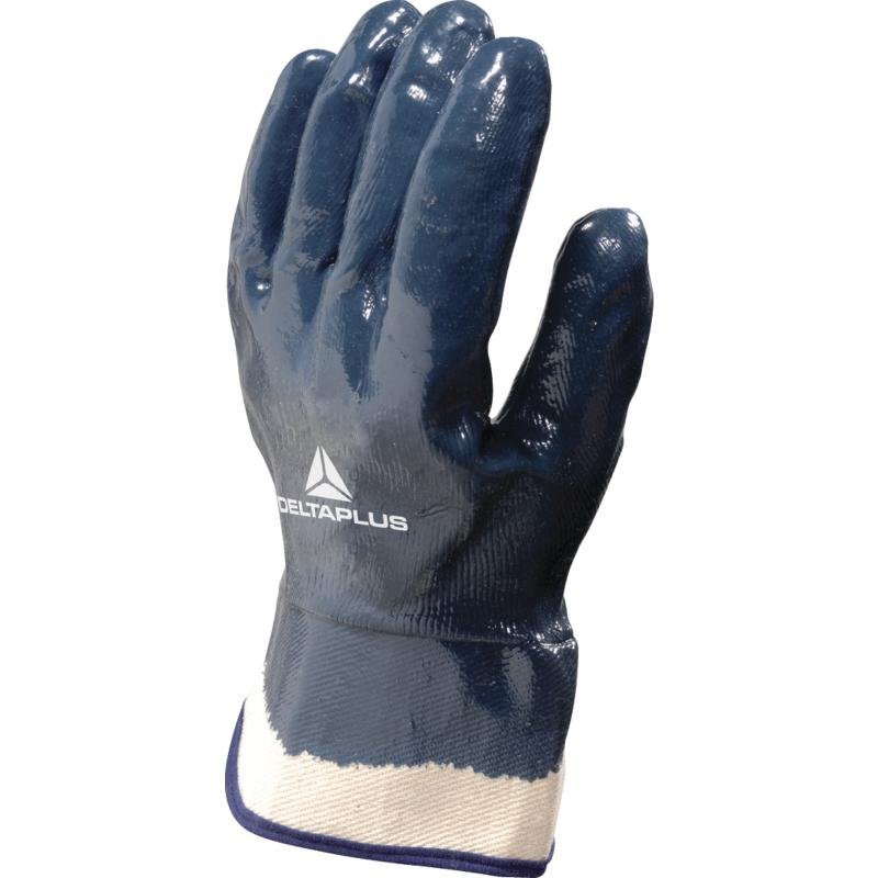 Nitrile on cotton jersey lining. 6-cm canvas safety cuff. Fully coated.