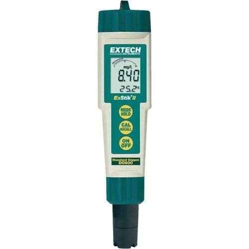 The ExStik? II DO600 meter displays Oxygen level as percent of Saturation from 0 to 200. 0 percent or Concentration from 0 to 20.00 ppm (mg/L). It features Adjustable Altitude Compensation (0 to 20,000 feet in 1,000 ft. increments), Adjustable Salinity Compensation from 0 to 50 ppt and an analog bargraph for indicating trends. DO600 meter includes a DO electrode, protective sensor cap, spare membrane cap, electrolyte, four 3V CR-2032 batteries, and 48″ (1.2m) neck strap.