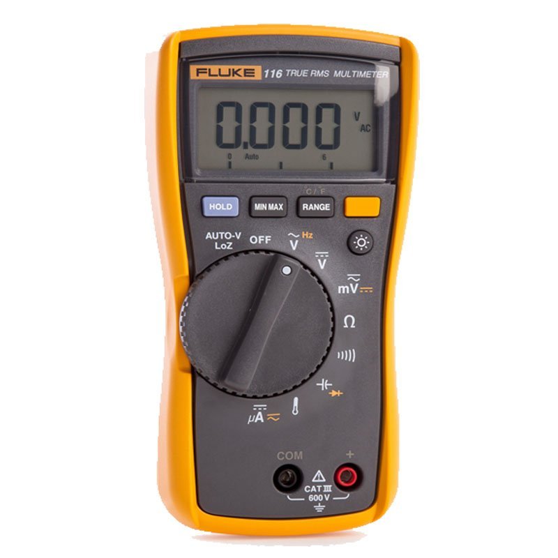 The Fluke 116 HVAC Multimeter features temperature and microamps measurements useful for heating, ventilation, air conditioning, and refrigeration (HVAC/R) technicians. The Fluke 116 is a compact true-RMS meter and has everything needed in an HVAC meter including temperature and microamp measurements to quickly troubleshoot problems with HVAC equipment and flame sensors.