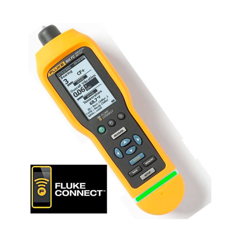 The fast, easy-to-use Fluke 805 FC Vibration Meter eliminates the confusion of vibration screening so you can make go or no-go maintenance decisions with confidence. Frontline mechanical troubleshooting teams have a highly reliable, repeatable and accurate way to check bearing and overall machine health. Instantly upload your data to the Fluke Connect app and share vibration measurement results with your maintenance team in real-time – all without leaving the field.