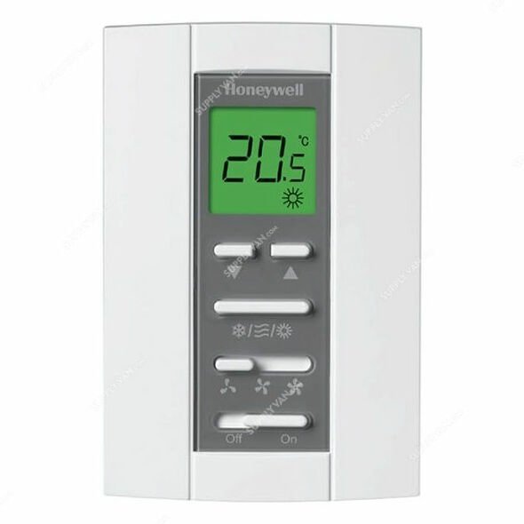 The T6812 digital thermostats are designed for application of 3-speed fan and valves in 2-pipe fan coil system. Including: 2-pipe cool only/heat only/manual changeover between heat and cool, ventilation mode, manual 3-speed fan control and water valve control. In ventilation mode, fan only support manual speed control.