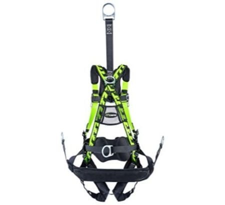 Miller AirCore Oil and Gas Harness with Steel Hardware: Tongue Buckle Legs, Mating Buckle Chest Strap, Front D-ring, Extended Back D-ring, Lumbar Pad, Removable Belt with Lumbar D-ring, Sub-pelvic strap, Color: Green, Size: S/M.