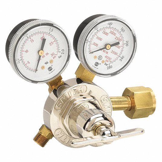Miller Electric Gas Regulator, Oxygen, CGA-540, Single Stage, Brass, 20 psi