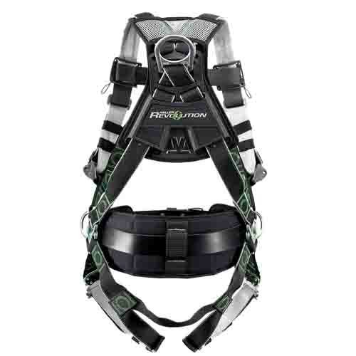 Engineered with seven unique components and more than eleven key product features, the Miller Revolution Full Body Safety Harness meets and exceeds user needs in the areas of safety, fit, comfort, compliance, flexibility and durability. Tested to 7,000 lbs. / 31 kN (40% stronger than ANSI requirements), the DualTech webbing offers a soft, textured inside and durable, chemical-resistant polyester outer material. These contrasting textures combine with a two-sided color scheme to making donning the fall protection harness quick and easy. The semi-flexible ErgoArmor back shield minimizes impact from snap hooks and self-retracting lifelines, and it features a knitted mesh membrane to optimize air circulation. The stand-up back D-ring simplifies connection and is over-sized to minimize “false” connections. This full body harness features the PivotLink connection with a unique rotary design that allows for independent adjustment of upper and lower torso. It also includes an integrated accessory system for quick attachment of tool belts, tool holders, pouches, phones, water bottles and more. Universal attachment clips ensure an easy fit with your existing accessories or tool rig. Removable belt, side D-rings and pad also enhance convenience. The cam buckle promotes a snug, no-slip fit and features an easy, single-hand release for simultaneous shoulder strap adjustment. Web finials feature a clip-on design to safely organize your webbing after proper adjustment. Maximum working load: 400 lbs. (181.4 kg). This Miller fall protection harness meets or exceeds all OSHA, ANSI, and CSA specifications.
