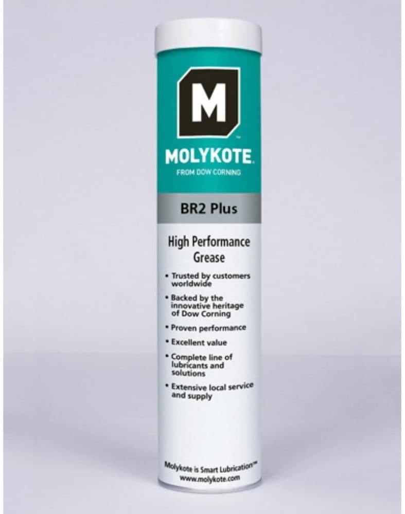 Molykote BR-2 Plus High Performance Grease is a lithium soap thickened, mineral oil grease fortified with MoS2 and other solid lubricants. It is a heavy duty, extreme pressure lubricant with high load carrying capability at moderate to high speeds. It is recommended for ball and socket joints, threaded spindles, sliding guides, and roller bearings. It provides protection against oxidation, scaring, corrosion, and water washout.