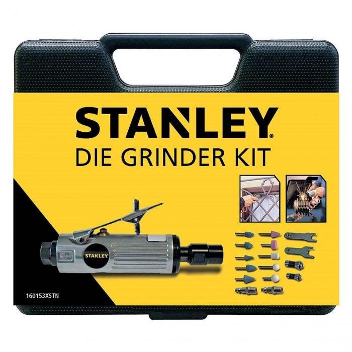 • STANLEY Die Grinder Kit including die grinder, 10 grinding stones ?6/3mm, 2 keys, 1 chuck ? 3mm, 1 chuck ? 6mm, 2 quick couplings 1/4″ M