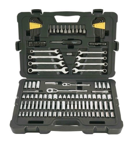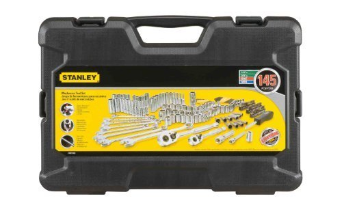 The STANLEY STMT71653 145pc Mechanics Tool Set offers a complete range of SAE and metric-sized sockets and drive tools. Our socket sets combine the most popular tools for easy accessibility. Stanley drive tools are forged from high-quality steel and finished in high-polish nickel chrome or black chrome. Selected ratchet handles are ergonomically designed and have an easy-to-use, thumb-operated reverse-switch mechanism. Sockets and extensions remain locked onto the drive until disengaged with an easy-to-reach, low-profile quick-release button. Stanley sockets feature our Max-Drive design, a unique radius corner design that provides 15% more torque* to tighten fasteners easily and simplify the turning of rounded corners. Max-Drive helps reduce fastener wear by minimizing contact on the outer 5% of the fastener, helping to increase life expectancy. It also helps reduce slipping on frozen or rusted fasteners. All Stanley ratchets, sockets and wrenches are manufactured globally to Stanley specifications, meeting and often exceeding ANSI specifications.
