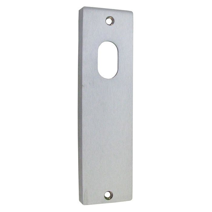 description: "Kaba 604VSCP 600 Plate with Cylinder Hole Specifications: Dimensions - 165mm x 44mm x 12mm square end rectangular plate Suits 35mm - 50mm Timber Doors (Separate extended screws available) Satin Chrome finish Suits Kaba commercial mortice locks Back to back fixings Fire Rated",