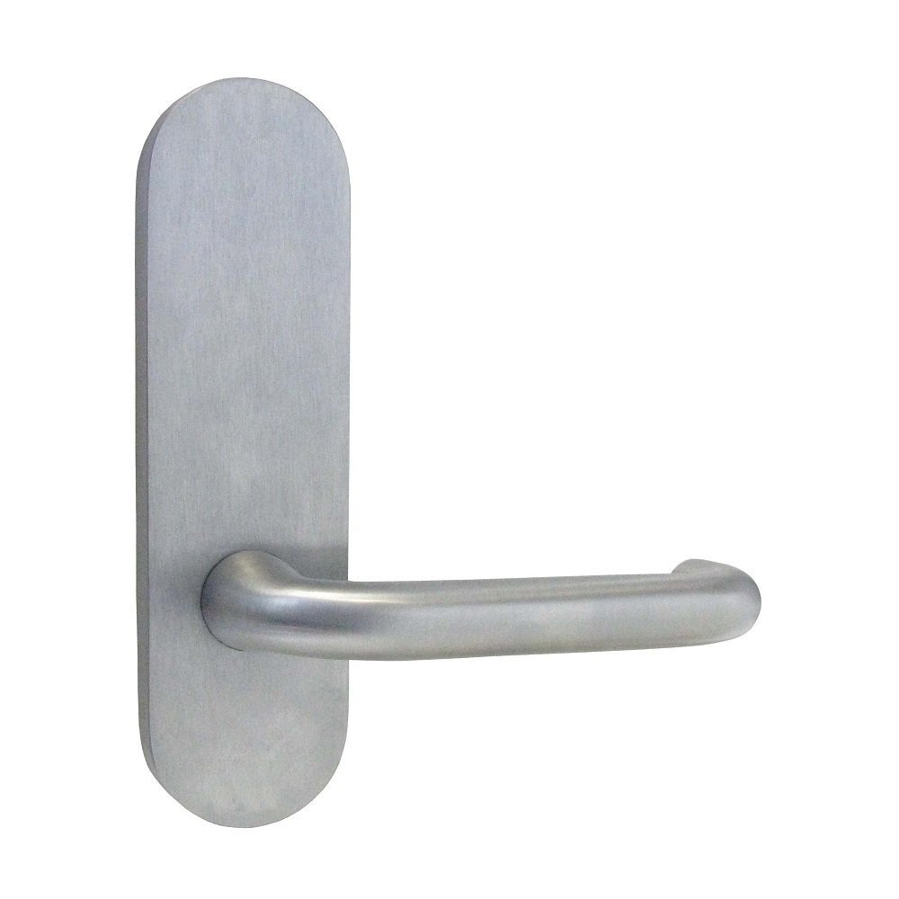 description: "Kaba 100 Series Rounded Edge Plate Furniture w/ 25 Lever 102C-25SCP The Kaba 100 series round end solid forged brass door furniture is designed for use with contemporary Australian style mortice locks and latches. Features: Stainless Steel drive plate, an integrated precision ground 12mm bush that provides enhanced handle support plus a lever torsion spring to eliminate handle sag Fixing: Plates are 12mm thick and are designed to fit back to back with either concealed or visible fixing to outside plate. Tiebolt M5 fixing screws have a cross-recessed head. Handing: Plates and knobs are non-handed with levers reversible on site in most cases. Specifications: Door Thickness: 32mm minimum to 50mm maximum. Height : 165mm Wide: 44mm Thick: 12mm Finish: Satin Chrome Plate",